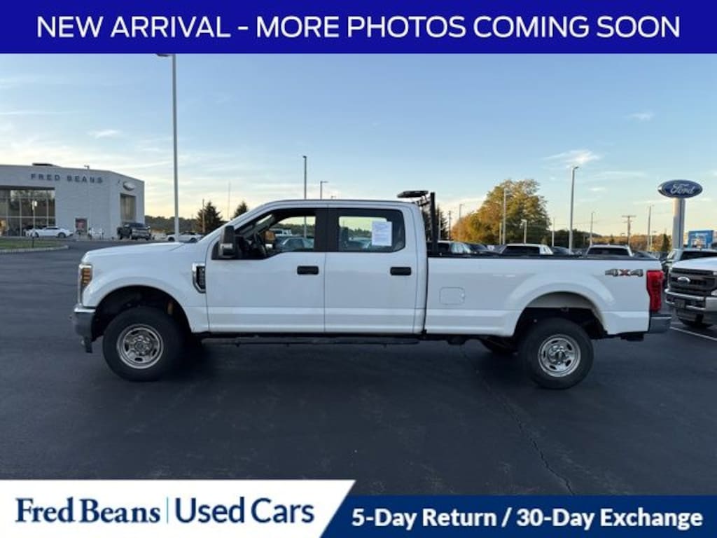 Factory Certified Vehicle, Free First Oil Change, 5 Day Return / 30 Day Exchange, Auto Reward Program, FORD BLUE CERTIFIED, 90 DAY/4,000 MILE COVERAGE, CALL NOW !!! - 908-835-8100, 4WD, 3.73 Axle Ratio, 4 Speakers, 4-Wheel Disc Brakes, 4.2" Center-Stack Screen, ABS brakes, Advanced Security Pack, Air Conditioning, AM/FM radio, AM/FM Stereo, Brake assist, Bright Chrome Hub Covers & Center Ornaments, Chrome Front Bumper, Chrome Rear Step Bumper, Delay-off headlights, Dual front impact airbags, Dual front side impact airbags, Electronic Stability Control, Exterior Parking Camera Rear, Front anti-roll bar, Front Center Armrest w/Storage, Front reading lights, Fully automatic headlights, GVWR: 10,000 lb Payload Package, HD Vinyl 40/20/40 Split Bench Seat, Low tire pressure warning, Manual Telescoping/Folding Trailer Tow Mirrors, Order Code 600A, Outside temperature display, Overhead airbag, Overhead console, Passenger vanity mirror, Power Equipment Group, Power Front & Rear Seat Windows, Power Locks, Power steering, Power Tailgate Lock, Radio: AM/FM Stereo/MP3 Player, Rear reading lights, Rear step bumper, Remote Keyless Entry, Split folding rear seat, Steering Wheel-Mounted Cruise Control, SYNC Communications & Entertainment System, Tachometer, Telescoping steering wheel, Tilt steering wheel, Traction control, Trip computer, Upfitter Switches (6), Variably intermittent wipers, XL Value Package. 2019 Ford F-250SD XL 6.2L V8 EFI SOHC 16V Flex Fuel 6-Speed Automatic 4WD 4D Crew Cab Oxford White