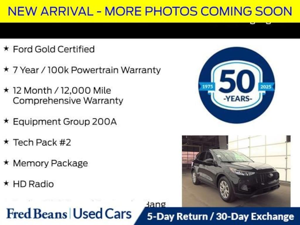Recent Arrival! 2023 Ford Escape Active 1.5L EcoBoost 8-Speed Automatic AWD 4D Sport Utility Agate Black Metallic Ford Gold Certified, 7 Year / 100k Powertrain Warranty, 12 Month / 12,000 Mile Comprehensive Warranty, 10-Way Power Driver's Seat, 12.3" Productivity Screen in Instrument Cluster, 360-Degree Camera w/Split View, 6-Way Power Passenger Seat, AM/FM radio: SiriusXM, Automatic temperature control, Body Color Mirrors, Connected Built-In Navigation, Equipment Group 200A, Ford Co-Pilot360 Assist 2.0, Front dual zone A/C, HD Radio, Heated door mirrors, Heated front seats, Heated steering wheel, Intelligent Adaptive Cruise Control w/Stop-and-Go, Memory Package, Power door mirrors, Power driver seat, Power Liftgate, Power windows, Radio: B&O Sound System by Bang & Olufsen, Rear Parking Sensor, Rear window defroster, Rear window wiper, Remote keyless entry, Reverse Brake Assist, SecuriCode Keyless Entry Keypad, SYNC 4 w/Enhanced Voice Recognition, Tech Pack #2, Wheels: 17" Shadow Silver-Painted Aluminum, Wireless Charging Pad. 26/32 City/Highway MPG