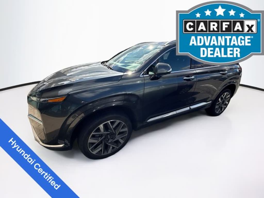 ***One Owner Clean Carfax Hyundai Certified*** Recent Arrival! 2023 Hyundai Santa Fe Calligraphy 2.5L I4 Shiftronic AWD 4D Sport Utility Portofino Gray Factory Certified Vehicle, Free First Oil Change, 5 Day Return / 30 Day Exchange, Auto Reward Program, AWD, Black Leather, AM/FM radio: SiriusXM, Apple CarPlay & Android Auto, Auto High-beam Headlights, Automatic temperature control, Exterior Parking Camera Rear, Front dual zone A/C, Fully automatic headlights, Garage door transmitter: HomeLink, harman/kardon® Speakers, Heads-Up Display, Heated & Ventilated Front Bucket Seats, Heated door mirrors, Heated front seats, Heated rear seats, Memory seat, Navigation System, Option Group 01, Power door mirrors, Power driver seat, Power Liftgate, Power moonroof, Power passenger seat, Rain sensing wipers, Remote keyless entry, Steering wheel mounted audio controls, Ventilated front seats.