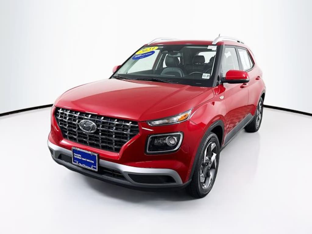 ***One Owner Hyundai Certified*** Recent Arrival! 2023 Hyundai Venue Limited I4 CVT FWD 4D Sport Utility Scarlet Red Pearl Factory Certified Vehicle, Free First Oil Change, 5 Day Return / 30 Day Exchange, Auto Reward Program, AM/FM radio: SiriusXM, Apple CarPlay & Android Auto, Auto High-beam Headlights, Automatic temperature control, Cargo Blocks, Cargo Net, Cargo Package, Cargo Tray, Fully automatic headlights, Heated door mirrors, Heated Front Bucket Seats, Heated front seats, Navigation System, Option Group 01, Power door mirrors, Radio: AM/FM/HD/SiriusXM w/Navigation System, Remote keyless entry, Steering wheel mounted audio controls.