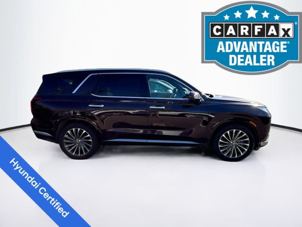 ***One Owner Clean Carfax Hyundai Certified*** Recent Arrival! 2024 Hyundai Palisade Calligraphy V6 8-Speed Automatic with SHIFTRONIC AWD 4D Sport Utility Sierra Burgundy Factory Certified Vehicle, Free First Oil Change, 5 Day Return / 30 Day Exchange, Auto Reward Program, AM/FM radio: SiriusXM, Apple CarPlay & Android Auto, Auto High-beam Headlights, Auto-dimming Rear-View mirror, Automatic temperature control, Exterior Parking Camera Rear, Front dual zone A/C, Fully automatic headlights, Garage door transmitter: HomeLink, harman/kardon® Speakers, Heads-Up Display, Heated & Ventilated Front Bucket Seats, Heated door mirrors, Heated front seats, Heated rear seats, Heated steering wheel, Memory seat, Navigation System, Option Group 01, Power door mirrors, Power driver seat, Power Liftgate, Power moonroof, Power passenger seat, Premium Nappa Leather Seat Trim, Rain sensing wipers, Remote keyless entry, Steering wheel mounted audio controls, Ventilated front seats, Ventilated rear seats.