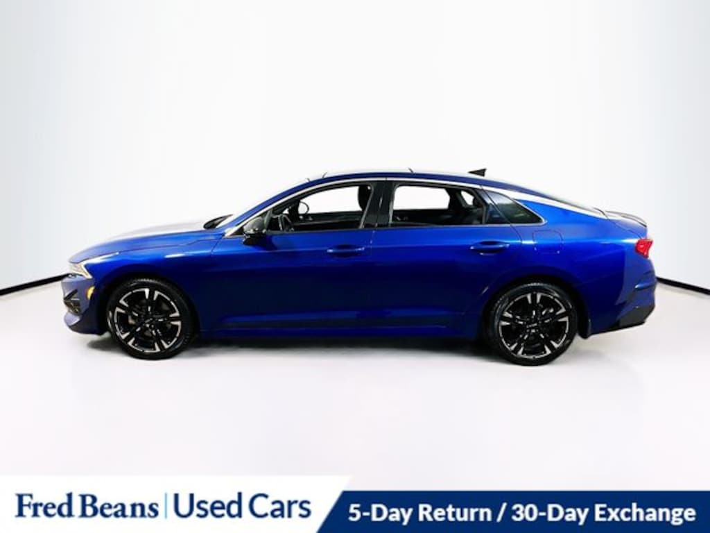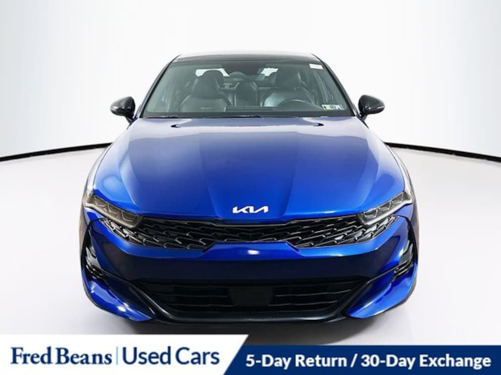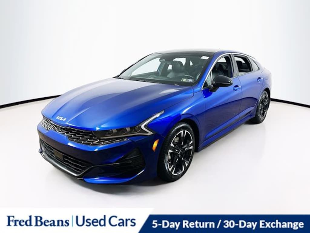 2022 Kia K5 GT-Line I4 8-Speed Automatic FWD 4D Sedan Sapphire Blue Kia Certified Pre-Owned Certified, 4-Wheel Disc Brakes, 6 Speakers, ABS brakes, Air Conditioning, Alloy wheels, AM/FM radio: SiriusXM, Apple CarPlay & Android Auto, Auto High-beam Headlights, Automatic temperature control, Brake assist, Bumpers: body-color, Cloth/Leatherette Seat Trim, Delay-off headlights, Driver door bin, Driver vanity mirror, Dual front impact airbags, Dual front side impact airbags, Electronic Stability Control, Forward Collision Avoidance-Assist - Cyclist, Forward Collision Avoidance-Assist - Junction Turn, Four wheel independent suspension, Front anti-roll bar, Front Bucket Seats, Front Center Armrest, Front dual zone A/C, Front fog lights, Front reading lights, Fully automatic headlights, Gloss Black Pillar & Door Frame Cover, GT-Line FWD Premium Package, Heated door mirrors, Highway Driving Assist, Illuminated entry, Interior Light Kit, Knee airbag, Low tire pressure warning, Navigation System, Occupant sensing airbag, Outside temperature display, Overhead airbag, Overhead console, Panic alarm, Passenger door bin, Passenger vanity mirror, Power door mirrors, Power driver seat, Power steering, Power windows, Radio data system, Radio: AM/FM/MP3 Audio System, Rear anti-roll bar, Rear seat center armrest, Rear side impact airbag, Rear window defroster, Remote keyless entry, Security system, Speed control, Speed-sensing steering, Split folding rear seat, Spoiler, Sport steering wheel, Steering wheel mounted audio controls, Tachometer, Telescoping steering wheel, Tilt steering wheel, Traction control, Trip computer, Turn signal indicator mirrors, Variably intermittent wipers, Wheels: 7.5J x 18" Gloss Black Machined Finish Alloy.