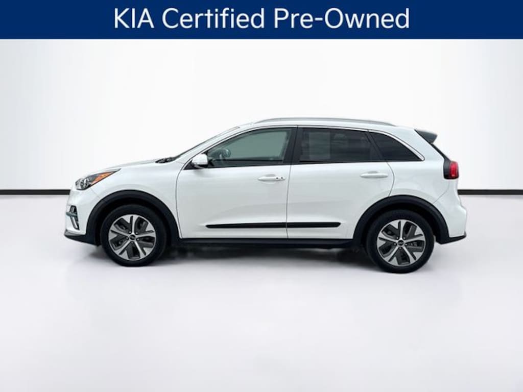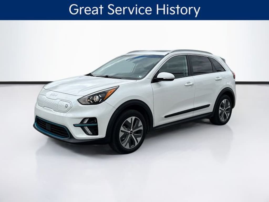 2022 Kia Niro EV EX Premium Electric Motor 1-Speed Automatic FWD 4D Sport Utility Snow White Pearl Visit our Website for a Complimentary CarFax Report!!!, Local Trade, Great Service History, KIA Certified Pre-Owned, 10 Year / 100,000 Mile Powertrain Coverage, 5 Year / 60,000 Mile Comprehensive Coverage, 12 Month / 12,000 Mile Platinum Coverage, 10 Year Unlimited Mile Roadside Assistance, Free First Oil Change, Auto Reward Program, Kia Certified Pre-Owned Certified, Apple CarPlay & Android Auto, Battery Heater, Cold Weather Package, Exterior Parking Camera Rear, Front fog lights, harman/kardon® Speakers, Heat Pump, Heated front seats, Heated Steering Wheel, Navigation System, Power driver seat, Power moonroof, Remote keyless entry, SynTex Seat Trim, Ventilated front seats, 4-Wheel Disc Brakes, 7J x 17" Alloy Wheels, 8 Speakers, 8.206 Axle Ratio, ABS brakes, Air Conditioning, Alloy wheels, AM/FM radio: SiriusXM, Auto High-beam Headlights, Automatic temperature control, Bodyside moldings, Brake assist, Bumpers: body-color, Cargo Net, Carpeted Floor Mats, Cross Bars, Delay-off headlights, Driver door bin, Driver vanity mirror, Dual front impact airbags, Dual front side impact airbags, Electronic Stability Control, Emergency communication system: UVO Link, Four wheel independent suspension, Front anti-roll bar, Front Bucket Seats, Front Center Armrest, Front reading lights, Fully automatic headlights, Heated & Ventilated Front Bucket Seats, Heated door mirrors, Illuminated entry, Knee airbag, Low tire pressure warning, Occupant sensing airbag, Outside temperature display, Overhead airbag, Overhead console, Panic alarm, Passenger door bin, Passenger vanity mirror, Power door mirrors, Power steering, Power windows, Radio: harman/kardon Premium Audio System, Rear anti-roll bar, Rear seat center armrest, Rear window defroster, Rear window wiper, Roof rack: rails only, Security system, Speed control, Speed-sensing steering, Split folding rear seat, Spoiler, Steering wheel mounted audio controls, Telescoping steering wheel, Tilt steering wheel, Traction control, Trip computer, Turn signal indicator mirrors, Variably intermittent wipers, Wheel Locks, Apple CarPlay & Android Auto, Battery Heater, Cold Weather Package, Exterior Parking Camera Rear, Front fog lights, harman/kardon® Speakers, Heat Pump, Heated front seats, Heated Steering Wheel, Navigation System, Power driver seat, Power moonroof, Remote keyless entry, SynTex Seat Trim, Ventilated front seats.