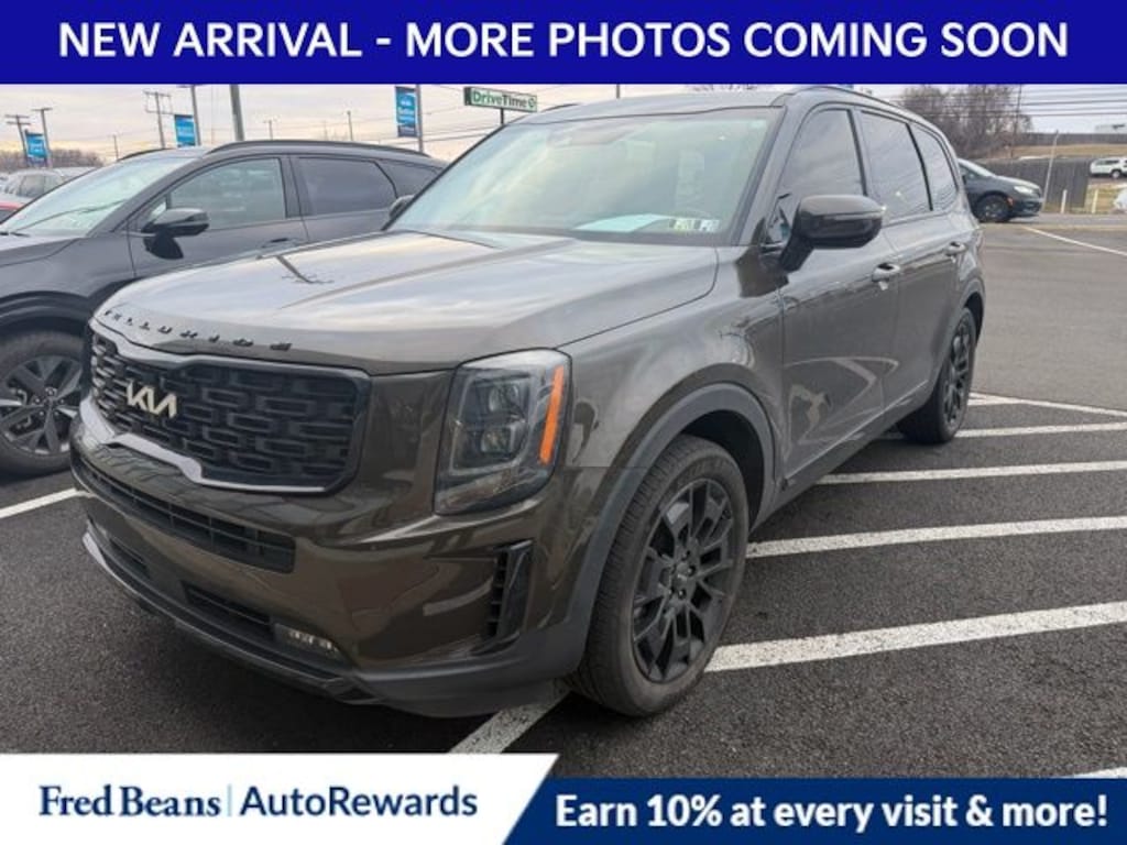 Recent Arrival! 2022 Kia Telluride SX 3.8L V6 DOHC 8-Speed Automatic AWD 4D Sport Utility Dark Moss 10 Speakers, 110V Inverter, 3.648 Axle Ratio, 3rd row seats: split-bench, 4-Wheel Disc Brakes, ABS brakes, Air Conditioning, Alloy wheels, AM/FM radio: SiriusXM, Apple CarPlay & Android Auto, Auto High-beam Headlights, Auto-dimming Rear-View mirror, Automatic temperature control, Black Finish Radiator Grille, Body Color Exterior Door Handles, Brake assist, Bumpers: body-color, Cargo Cover, Cargo Seatback Up Mat, Carpeted Floor Mats, Compass, Delay-off headlights, Driver door bin, Driver vanity mirror, Dual front impact airbags, Dual front side impact airbags, Electronic Stability Control, Emergency communication system: 911 Connect, Exclusive Black Fog Light Bezel, Exclusive Black Headlight Bezels, Four wheel independent suspension, Front & Rear Gloss Black Finish Bumper Skid Plates, Front anti-roll bar, Front Bucket Seats, Front Center Armrest, Front dual zone A/C, Front fog lights, Front reading lights, Fully automatic headlights, Garage door transmitter: HomeLink, Gloss Black Finish Exterior Emblems, Gloss Black Finish Front & Rear Door Garnish, Gloss Black Finish Roof Rails, harman/kardon® Speakers, Heads-Up Display, Heated & Ventilated 2nd Row Seats, Heated & Ventilated Front Bucket Seats, Heated door mirrors, Heated front seats, Heated steering wheel, Hybrid Cargo Net, Illuminated entry, Knee airbag, Leather Seat Trim, Leather Shift Knob, Leather steering wheel, Low tire pressure warning, Memory seat, Navigation System, Nightfall Edition Package, Occupant sensing airbag, Outside temperature display, Overhead airbag, Overhead console, Panic alarm, Passenger door bin, Passenger vanity mirror, Power door mirrors, Power driver seat, Power Liftgate, Power moonroof, Power passenger seat, Power steering, Power windows, Premium Cloth Headliner & Pillar Trim, Premium Nappa Leather Seat Trim, Radio data system, Radio: AM/FM harman/kardon Audio System, Rain-Sensing Front Windshield Wipers, Rear air conditioning, Rear anti-roll bar, Rear audio controls, Rear reading lights, Rear window defroster, Rear window wiper, Reclining 3rd row seat, Remote keyless entry, Roof rack: rails only, Security system, Self Leveling Rear Suspension, Smart Key w/ Push Button and Remote Start, Speed control, Speed-sensing steering, Split folding rear seat, Spoiler, Steering wheel mounted audio controls, SX Dune Brown Nappa Leather Seats, SX Prestige Package, Tachometer, Telescoping steering wheel, Tilt steering wheel, Tow Hitch w/Harness (TOF), Towing Package, Traction control, Trip computer, Turn signal indicator mirrors, Variably intermittent wipers, Ventilated front seats, Wheels: 20" x 7.5" Black Alloy, Wheels: 20" x 7.5" Exclusive Black Alloy.