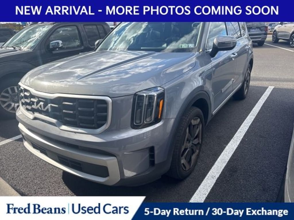 Recent Arrival! 2023 Kia Telluride S 3.8L V6 DGI DOHC Dual CVVT 8-Speed Automatic AWD 4D Sport Utility Everlasting Silver Kia Certified Pre-Owned Certified, 3.648 Axle Ratio, 3rd row seats: split-bench, 4-Wheel Disc Brakes, 6 Speakers, ABS brakes, Air Conditioning, Alloy wheels, AM/FM radio: SiriusXM, Apple CarPlay & Android Auto, Auto High-beam Headlights, Automatic temperature control, Brake assist, Bumpers: body-color, Carpet Floor Mats, Delay-off headlights, Driver door bin, Driver vanity mirror, Dual front impact airbags, Dual front side impact airbags, Electronic Stability Control, Emergency communication system: 911 Connect, Exterior Parking Camera Rear, Four wheel independent suspension, Front anti-roll bar, Front Bucket Seats, Front Center Armrest, Front dual zone A/C, Front reading lights, Fully automatic headlights, Heated door mirrors, Heated Front Bucket Seats, Heated front seats, Illuminated entry, Knee airbag, Leather Shift Knob, Leather steering wheel, Low tire pressure warning, Navigation System, Occupant sensing airbag, Outside temperature display, Overhead airbag, Overhead console, Panic alarm, Passenger door bin, Passenger vanity mirror, Power door mirrors, Power driver seat, Power steering, Power windows, Radio data system, Radio: AM/FM Display Audio System, Rear air conditioning, Rear anti-roll bar, Rear audio controls, Rear reading lights, Rear side impact airbag, Rear window defroster, Rear window wiper, Reclining 3rd row seat, Remote keyless entry, Roof rack: rails only, Security system, Smart Key w/ Push Button and Remote Start, Speed control, Speed-sensing steering, Split folding rear seat, Spoiler, Steering wheel mounted audio controls, SynTex Synthetic Leather Seat Trim, Tachometer, Telescoping steering wheel, Tilt steering wheel, Traction control, Trip computer, Turn signal indicator mirrors, Variably intermittent wipers, Wheels: 20" x 7.5" Black Finish.
