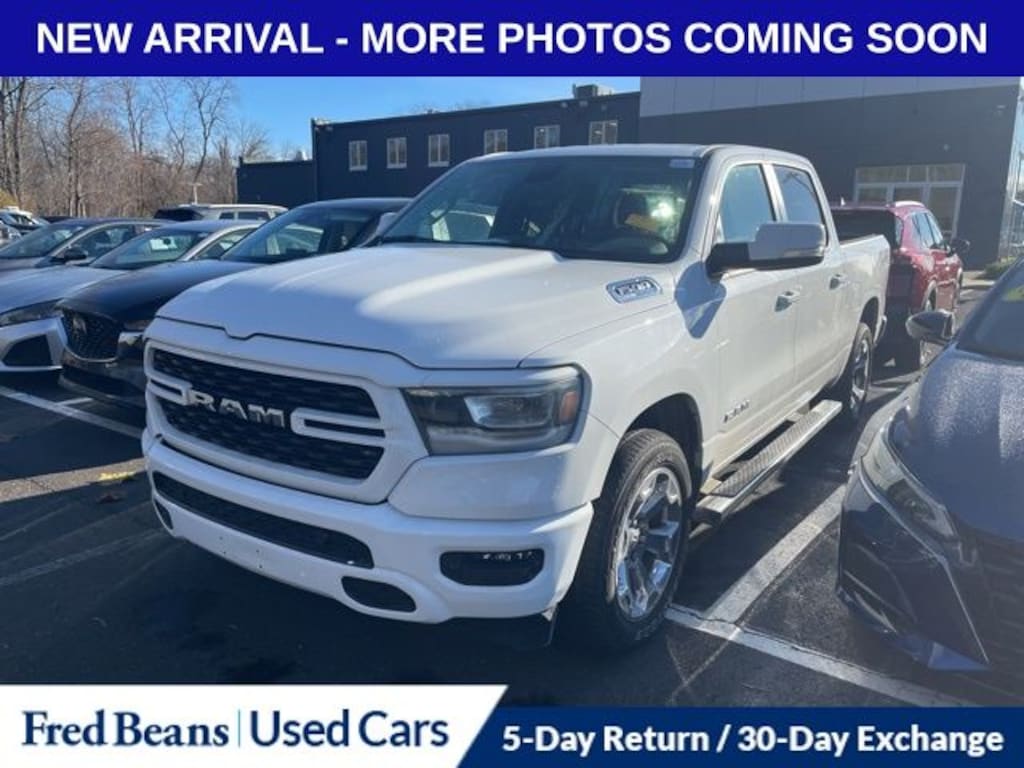2022 Ram 1500 Big Horn/Lone Star HEMI 5.7L V8 Multi Displacement VVT 8-Speed Automatic 4WD 4D Crew Cab Bright White Clearcoat Great Service History, Triton Certified Classic Vehicle, 3 Month / 4,000 Mile Comprehensive Warranty, Free First Oil Change, 5 Day Return / 30 Day Exchange, Auto Reward Program, 115V Auxiliary Power Outlet, 115V Auxiliary Rear Power Outlet, 2nd Row In Floor Storage Bins, 4G LTE Wi-Fi Hot Spot, 8.4" Touchscreen Display, Air Conditioning ATC w/Dual Zone Control, All Plant-Installed Decals, Apple CarPlay, Auto-Dimming Exterior Driver Mirror, Auto-Dimming Rear-View Mirror, Big Horn Badge, Big Horn Level 2 Equipment Group, Black Exterior Mirrors, Black Interior Accents, Black Premium Power Mirrors, Bluetooth Handsfree Phone & Audio, Body Color Exterior Mirrors, Body Color Front Bumper, Body Color Premium Power Mirrors, Body Color Rear Bumper w/Step Pads, Bridgestone Brand Tires, Class IV Receiver Hitch, Cluster 7.0" TFT Color Display, Connectivity - US/Canada, Convex Wide-Angle Mirror Insert, Deluxe Cloth Bucket Seats, Exterior Mirrors Courtesy Lamps, Exterior Mirrors w/Heating Element, Exterior Mirrors w/Supplemental Signals, For Details, Visit DriveUconnect.com, Front LED Fog Lamps, Global Telematics Box Module (TBM), Glove Box Lamp, Google Android Auto, GPS Antenna Input, Heated Front Seats, Heated Steering Wheel, Integrated Center Stack Radio, LED Reflector Headlamps, LED Taillamps, Media Hub w/2 Charge Only USBs, ParkSense Front/Rear Park Assist w/Stop, Power 2-Way Driver Lumbar Adjust, Power 8-Way Driver Seat, Power Adjustable Pedals, Power-Folding Mirrors, Premium Lighting Group, Quick Order Package 27Z Big Horn, Radio: Uconnect 5 W w/8.4" Display, Rear Dome w/On/Off Switch Lamp, Rear Power Sliding Window, Rear Window Defroster, Remote Start System, Security Alarm, SiriusXM Radio Service, SiriusXM Satellite Radio, Sport Appearance Package, Sport Decal, Sun Visors w/Illuminated Vanity Mirrors, Universal Garage Door Opener, USB Host Flip.