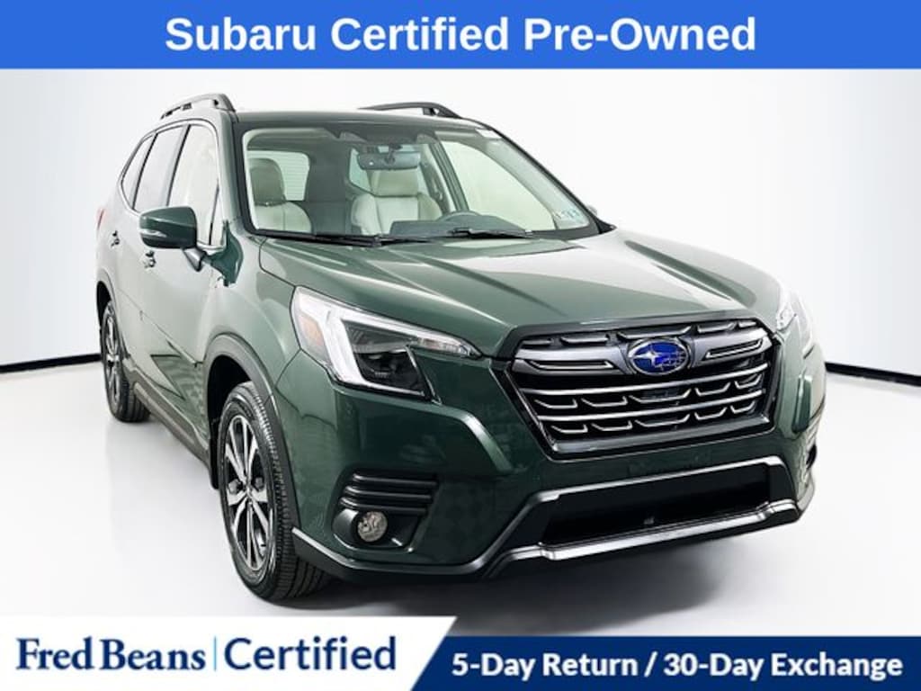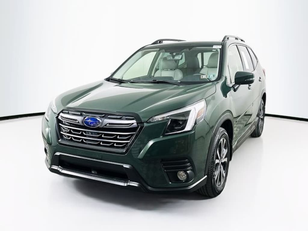 Recent Arrival! 2023 Subaru Forester Limited 2.5L 4-Cylinder DOHC 16V Lineartronic CVT AWD 4D Sport Utility Cascade Green Silica 7 Year / 100k Powertrain Warranty, Non Smoker, harman/kardon 9-Speaker Audio System, Heated front seats, Heated Steering Wheel, Navigation System, Power driver seat, Power Liftgate, Power moonroof: Panoramic, Reverse Automatic Braking System (RAB), STARLINK/Apple CarPlay/Android Auto.