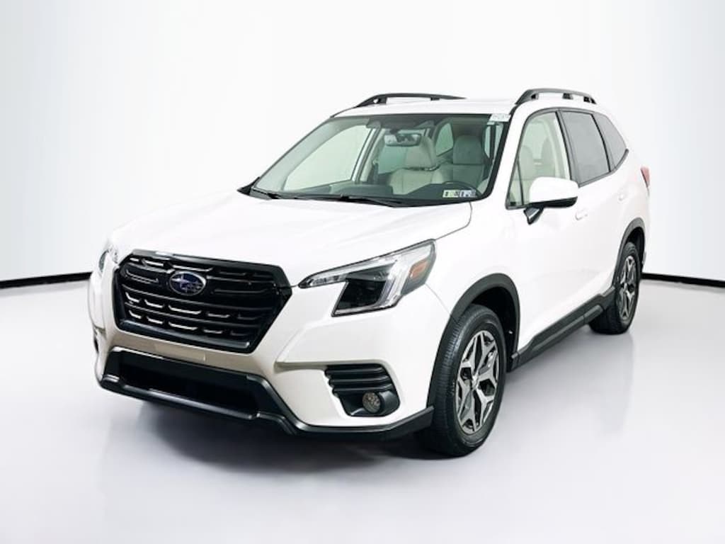 2023 Subaru Forester Premium 2.5L 4-Cylinder DOHC 16V Lineartronic CVT AWD 4D Sport Utility Crystal White Pearl Local Trade, 7 Year / 100k Powertrain Warranty, Non Smoker, Blind-Spot Detection (BSD), Exterior Parking Camera Rear, EyeSight System, Fully automatic headlights, Heated front seats, Power driver seat, Power moonroof: Panoramic, Power Rear Gate, STARLINK/Apple CarPlay/Android Auto.