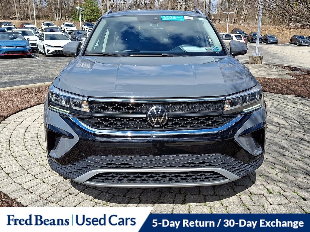 Recent Arrival! 2023 Volkswagen Taos 1.5T SE 1.5L I4 Turbocharged DOHC 16V LEV3-SULEV30 158hp 7-Speed DSG Automatic with Tiptronic AWD 4D Sport Utility Pure Gray Great Service History, Remainder of Factory Warranty, Factory Certified Vehicle, Auto Reward Program, Black Wheel Package, Wheels: 18" Black Painted Alloy.