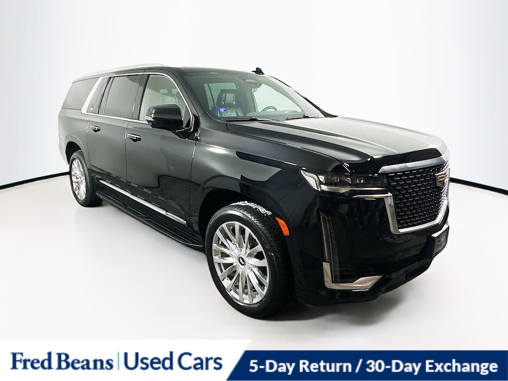 2023 Cadillac Escalade ESV Premium 6.2L V8 10-Speed Automatic AWD 4D Sport Utility Black Raven Bought & Serviced at Fred Beans, Local Trade, Great Service History, Triton Certified Classic Vehicle, 3 Month / 4,000 Mile Comprehensive Warranty, AWD, Adaptive Cruise Control, AKG Studio 19-Speaker Audio System, Automatic Seat Belt Tightening, Door Lock & Latch Shields, Enhanced Automatic Emergency Braking, Enhanced Automatic Parking Assist, Glass Breakage Sensor, Heated & Ventilated Driver & Front Passenger Seats, Lane Change Alert w/Side Blind Zone Alert, Livery Package, Mechanical Limited-Slip Differential, Power Panoramic Tilt-Sliding Sunroof, Preferred Equipment Group 1SB, Rear Camera Mirror, Rear Camera Mirror Washer, Rear Cross Traffic Alert, Reconfigurable Full-Color Head-Up Display, Reverse Automatic Braking, Running Board Assist Steps, Theft-Deterrent Alarm System, Vehicle Inclination Sensor, Vehicle Interior Movement Sensor.