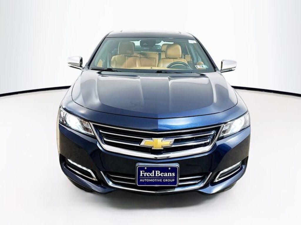 2016 Chevrolet Impala LTZ 2LZ 3.6L V6 DI DOHC 6-Speed Automatic Electronic with Overdrive FWD 4D Sedan Blue Velvet Metallic 100-Watt 6-Speaker System, 120-Volt Power Outlet, 3 USB Ports, 4-Wheel Disc Brakes, 6 Speakers, 8-Way Power Driver Seat Adjuster, 8-Way Power Front Passenger Seat Adjuster, 8" Diagonal Color Infotainment Display, ABS brakes, Advanced Technology Package, Air Conditioning, Alloy wheels, AM/FM radio: SiriusXM, Auto-Dimming Inside Rear-View Mirror, Automatic temperature control, Blind spot sensor: Side Blind Zone Alert warning, Bodyside moldings, Bose Centerpoint Surround Sound w/11-Speakers, Brake assist, Bumpers: body-color, Carpeted Trunk Mat, Compass, Delay-off headlights, Driver door bin, Driver Memory, Driver Power Lumbar Seat Adjuster, Driver vanity mirror, Dual front impact airbags, Dual front side impact airbags, Electronic Stability Control, Emergency communication system: OnStar Guidance, Enhanced Convenience Package, Exterior Parking Camera Rear, Four wheel independent suspension, Front anti-roll bar, Front Bucket Seats, Front Center Armrest, Front dual zone A/C, Front License Plate Bracket, Front Passenger Power Lumbar Seat Adjuster, Front reading lights, Fully automatic headlights, Heated door mirrors, Heated Driver & Front Passenger Seats, Heated front seats, Heated Steering Wheel, High-Intensity Discharge Headlights, Illuminated entry, Knee airbag, Leather Shift Knob, Low tire pressure warning, Occupant sensing airbag, Outside Heated Power-Adjustable Mirrors, Overhead airbag, Overhead console, Panic alarm, Passenger door bin, Passenger vanity mirror, Perforated Leather-Appointed Seat Trim, Power door mirrors, Power driver seat, Power passenger seat, Power steering, Power Tilt & Telescoping Steering Column, Power Tilt-Sliding Sunroof, Power windows, Preferred Equipment Group 2LZ, Premium audio system: Chevrolet MyLink, Premium Carpeted Front & Rear Floor Mats, Radio data system, Radio: Chevrolet MyLink AM/FM Stereo, Radio: Chevrolet MyLink AM/FM Stereo w/CD & NAV, Rear anti-roll bar, Rear Parking Sensors, Rear reading lights, Rear seat center armrest, Rear side impact airbag, Rear window defroster, Remote CD player, Remote keyless entry, SD Card Receptacle, Security system, SiriusXM Satellite Radio, Speed control, Speed-sensing steering, Split folding rear seat, Steering wheel mounted audio controls, Tachometer, Telescoping steering wheel, Tilt steering wheel, Traction control, Trip computer, Turn signal indicator mirrors, Universal Home Remote, Variably intermittent wipers, Ventilated Driver Seat, Ventilated Front Passenger Seat, Wheels: 19" Machined-Face Aluminum, Wheels: 20" Aluminum, Wireless Charging For Devices.