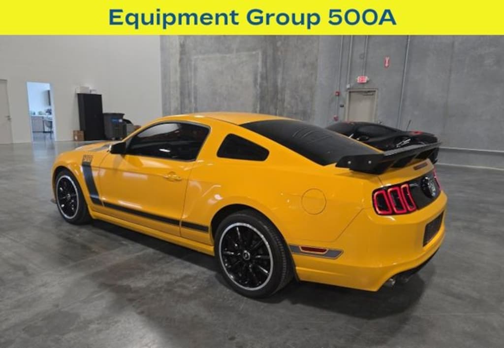Beyond its raw power, the Boss 302 exudes a bold, muscular presence. The distinctive yellow exterior, accented by gray embroidered Boss logos, commands attention wherever it goes. Complementing the aggressive styling are High-Intensity Discharge Headlights, a functional rear spoiler, and 19-inch Painted Aluminum Wheels that complete the captivating look.