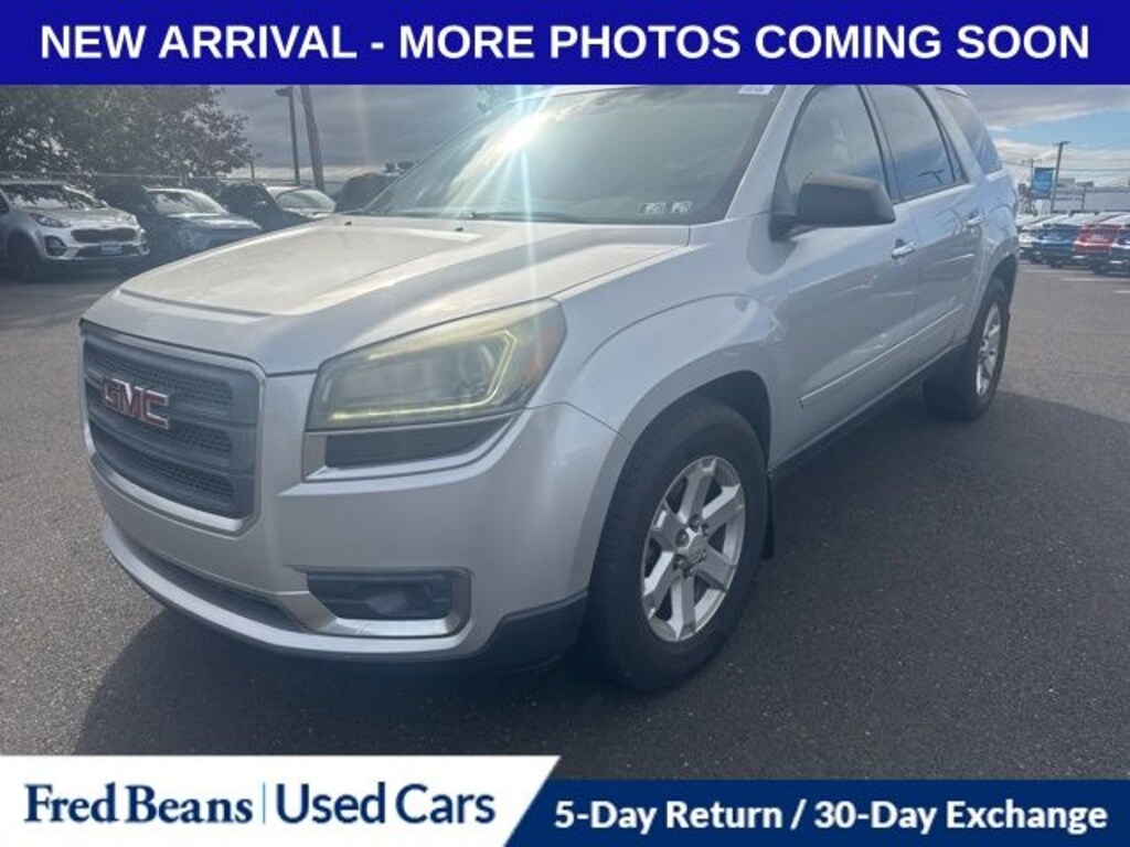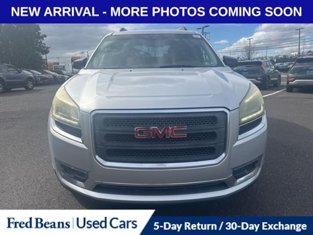 Recent Arrival! 2015 GMC Acadia SLE-2 3.6L V6 SIDI 6-Speed Automatic AWD 4D Sport Utility Quicksilver Metallic AWD, Ebony Cloth, 18" x 7.5" Aluminum (4) Wheels, 2-Way Power Front Passenger Seat, 3.16 Axle Ratio, 3rd row seats: split-bench, 4-Wheel Disc Brakes, 6 Speakers, 6-Speaker Audio System, 7-Passenger Seating (2-2-3 Seating Configuration), 8-Passenger Seating (2-3-3 Seating Configuration), 8-Way Power Driver Seat, ABS brakes, Acoustical Insulation Package, Air Conditioning, Alloy wheels, AM/FM radio: SiriusXM, Auto-dimming Rear-View mirror, Black Power-Adjustable Outside Mirrors, Body-Color Bodyside Moldings, Bodyside moldings, Brake assist, Bumpers: body-color, Carpeted Removable Front 2nd & 3rd Row Floor Mats, CD player, Compass, Constant Effort Power Steering, Delay-off headlights, Driver door bin, Driver vanity mirror, Dual front impact airbags, Dual front side impact airbags, Electronic Stability Control, Emergency communication system: OnStar Directions & Connections, Exterior Parking Camera Rear, Four wheel independent suspension, Front & Rear Splash Guards, Front anti-roll bar, Front Bucket Seats, Front Center Armrest w/Storage, Front License Plate Bracket, Front reading lights, Fully automatic headlights, Heated Driver & Front Passenger Seats, Heavy-Duty Cooling System, Illuminated entry, Inside Rear-View Auto-Dimming Mirror, Leather-Wrapped Steering Wheel, Low tire pressure warning, Occupant sensing airbag, Outside temperature display, Overhead airbag, Overhead console, Panic alarm, Passenger door bin, Passenger vanity mirror, Power door mirrors, Power driver seat, Power Liftgate, Power passenger seat, Power Rear Liftgate Body, Power steering, Power windows, Power Windows w/Driver Express-Down, Preferred Equipment Group 3SB, Premium Cloth Seat Trim, Radio data system, Radio: Color Touch AM/FM/CD w/IntelliLink, Rear air conditioning, Rear anti-roll bar, Rear Parking Sensors, Rear reading lights, Rear window defroster, Rear window wiper, Remote keyless entry, Remote Vehicle Start, Roof rack: rails only, Single Outlet Exhaust, Single-Zone Manual Front Climate Control, SiriusXM Satellite Radio, Speed control, Spoiler, Steering Wheel Mounted Audio Controls, Steering wheel mounted audio controls, Tachometer, Telescoping steering wheel, Tilt & Telescopic Steering Column, Tilt steering wheel, Traction control, Trailer Hitch, Trailering Equipment, Trip computer, Variably intermittent wipers, Voltmeter, AWD, Ebony Cloth.
