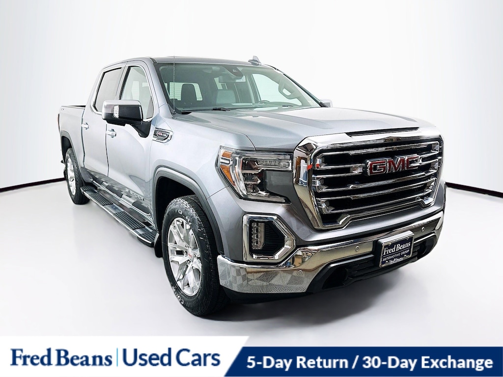 2019 GMC Sierra 1500 SLT EcoTec3 6.2L V8 10-Speed Automatic 4WD 4D Crew Cab Satin Steel Metallic Bought & Serviced at Fred Beans, Local Trade, Great Service History, 7 Year / 100k Powertrain Warranty, 10-Speed Automatic, 4WD, Jet Black Leather, 12-Volt Rear Auxiliary Power Outlet, 120-Volt Instrument Panel Power Outlet, 170 Amp Alternator, 2 USB Ports, 2 USB Ports (1st Row), All-Weather Floor Liner (LPO), Auxiliary External Transmission Oil Cooler, Chrome Grille, Color-Keyed Carpeting Floor Covering, Compass, Deep-Tinted Glass, Driver Alert Package I, Driver Alert Package II, Electric Rear-Window Defogger, Electrical Lock Control Steering Column, Floor Mounted Console, Following Distance Indicator, Forward Collision Alert, Front & Rear Black Molded Splash Guards (LPO), Front Bucket Seats, Front Frame-Mounted Black Recovery Hooks, Front Pedestrian Braking, GMC 4G LTE, GMC Connected Access, GMC Protection Package (LPO), HD Radio, Heated 2nd Row Outboard Seats, Heated Driver & Front Passenger Seating, Heavy-Duty Rear Locking Differential, Hitch Guidance, Hitch Guidance w/Hitch View, In-Vehicle Trailering App, Integrated Trailer Brake Controller, IntelliBeam Automatic High Beam On/Off, Keyless Open & Start, Lane Change Alert w/Side Blind Zone Alert, Lane Keep Assist w/Lane Departure Warning, LED Cargo Area Lighting, Low Speed Forward Automatic Braking, Manual Tilt-Wheel & Telescoping Steering Column, OnStar & GMC Connected Services Capable, Perimeter Lighting, Power Door Locks, Power Front Passenger Windows w/Express Up/Down, Power Front Windows w/Driver Express Up/Down, Power Rear Windows w/Express Down, Power Sliding Rear Window w/Rear Defogger, Preferred Equipment Group 4SA, Premium Bose 7-Speaker Sound System, Radio: Premium GMC Infotainment Sys w/Navigation, Rear Cross Traffic Alert, Rear Dual USB Charging-Only Ports, Rear Wheelhouse Liners, Remote Vehicle Starter System, Safety Alert Seat, SLT Convenience Package, SLT Preferred Package, Steering Wheel Audio Controls, Theft Deterrent System (Unauthorized Entry), Trailering Package, Ultrasonic Front & Rear Park Assist, Universal Home Remote, Ventilated Driver & Front Passenger Seats, Wireless Charging.