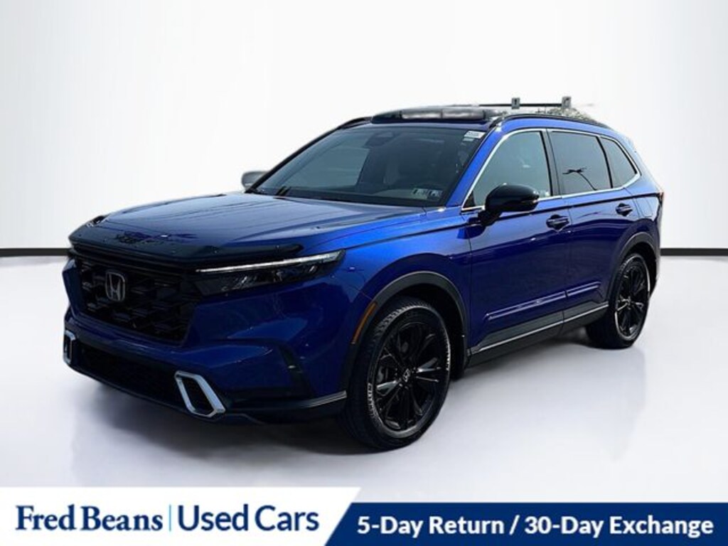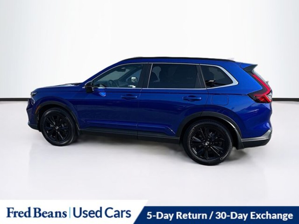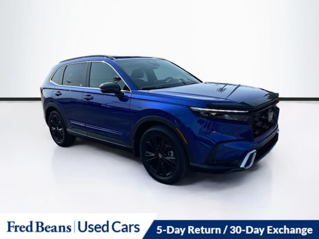 But the true beauty of this SUV lies in its timeless design. The bold, athletic stance and sleek, modern lines turn heads wherever you go. The Blue exterior color exudes a sense of sophistication and elegance, making this Honda CR-V Hybrid Sport Touring a true head-turner.