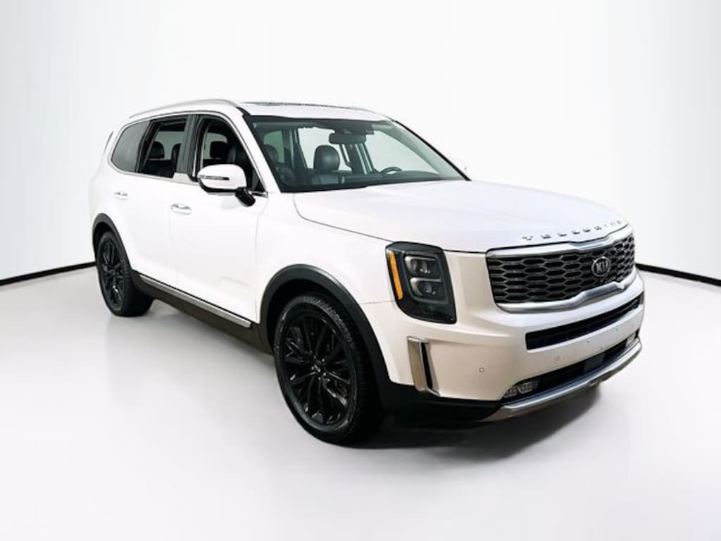 Recent Arrival! 2020 Kia Telluride SX 3.8L V6 DGI DOHC Dual CVVT 8-Speed Automatic AWD 4D Sport Utility Snow White Pearl 10 Speakers, 3.648 Axle Ratio, 3rd row seats: split-bench, 4-Wheel Disc Brakes, ABS brakes, Air Conditioning, Alloy wheels, AM/FM radio: SiriusXM, Apple CarPlay & Android Auto, Auto High-beam Headlights, Auto-dimming Rear-View mirror, Automatic temperature control, Brake assist, Bumpers: body-color, Compass, Delay-off headlights, Driver door bin, Driver vanity mirror, Dual front impact airbags, Dual front side impact airbags, Electronic Stability Control, Emergency communication system: 911 Connect, Four wheel independent suspension, Front anti-roll bar, Front Bucket Seats, Front Center Armrest, Front dual zone A/C, Front fog lights, Front reading lights, Fully automatic headlights, Garage door transmitter: HomeLink, Heated & Ventilated Front Bucket Seats, Heated door mirrors, Heated front seats, Heated Steering Wheel, Heated steering wheel, Hybrid Cargo Net, Illuminated entry, Knee airbag, Leather Shift Knob, Leather steering wheel, Leather-Trimmed Upholstery, Low tire pressure warning, Memory seat, Navigation System, Occupant sensing airbag, Outside temperature display, Overhead airbag, Overhead console, Panic alarm, Passenger door bin, Passenger vanity mirror, Power door mirrors, Power driver seat, Power Liftgate, Power moonroof, Power passenger seat, Power steering, Power windows, Radio data system, Radio: AM/FM/MP3/SiriusXM Audio System, Rear air conditioning, Rear anti-roll bar, Rear audio controls, Rear reading lights, Rear window defroster, Rear window wiper, Reclining 3rd row seat, Remote keyless entry, Roof rack: rails only, Security system, Self-Leveling Rear Suspension, Speed control, Speed-sensing steering, Split folding rear seat, Spoiler, Steering wheel mounted audio controls, Tachometer, Telescoping steering wheel, Tilt steering wheel, Tow Hitch w/Harness, Towing Package, Traction control, Trip computer, Turn signal indicator mirrors, Variably intermittent wipers, Ventilated front seats, Wheels: 7.5" x 20" Black Finish Sport Alloy.
