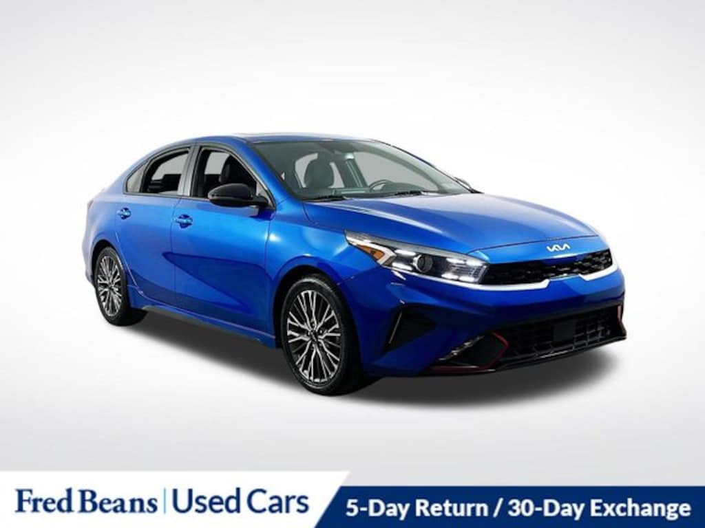 Recent Arrival! 2023 Kia Forte GT-Line 2.0L I4 MPI CVT FWD 4D Sedan Sporty Blue 10-Way Power Driver's Seat, 17" x 7.0J Alloy Wheels, 4-Wheel Disc Brakes, 6 Speakers, ABS brakes, Air Conditioning, Alloy wheels, AM/FM radio: SiriusXM, Apple CarPlay & Android Auto, Auto High-beam Headlights, Automatic temperature control, Brake assist, Bumpers: body-color, Cloth & SynTex Seat Trim, Delay-off headlights, Driver door bin, Driver vanity mirror, Dual front impact airbags, Dual front side impact airbags, Electronic Parking Brake (EPB), Electronic Stability Control, Emergency communication system, Exterior Parking Camera Rear, Forward Collision Avoidance-Assist - Cyclist, Front anti-roll bar, Front Bucket Seats, Front Center Armrest, Front dual zone A/C, Front fog lights, Front reading lights, Front wheel independent suspension, Fully automatic headlights, GT-Line Premium Package, GT-Line Sport Premium Package, Heated & Ventilated Front Seats, Heated door mirrors, Illuminated entry, Leather Shift Knob, Leather steering wheel, LED Interior Lighting, Low tire pressure warning, Navigation System, Navigation-Based Smart Cruise Control (NSCC), Occupant sensing airbag, Outside temperature display, Overhead airbag, Overhead console, Panic alarm, Passenger door bin, Passenger vanity mirror, Power door mirrors, Power steering, Power Sunroof, Power windows, Radio data system, Radio: 10.25" Display Audio, Radio: harman kardon Premium Audio, Rear AC Vent, Rear seat center armrest, Rear USB Charger, Rear window defroster, Remote keyless entry, Security system, Smart Cruise Control w/Stop & Go, Speed control, Split folding rear seat, Spoiler, Sport steering wheel, Steering wheel mounted audio controls, SynTex Seat Trim, Tachometer, Telescoping steering wheel, Tilt steering wheel, Traction control, Trip computer, Turn signal indicator mirrors, Variably intermittent wipers, Wireless Charging.