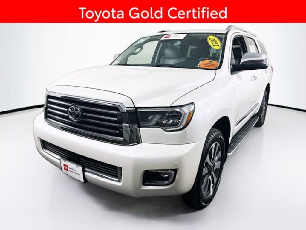 2021 Toyota Sequoia Limited 5.7L V8 6-Speed Automatic 4WD 4D Sport Utility Super White 5 Day Return / 30 Day Exchange, Auto Reward Program, Free First Oil Change, Sequoia Limited, 4D Sport Utility, 5.7L V8, 6-Speed Automatic, 4WD, Super White, Graphite w/Perforated Leather Seat Trim, Leather Trim Seats, Radio: Premium Audio w/Navigation & JBL, Safety & Convenience Package, Two-Position Power Memory Driver's Seat.